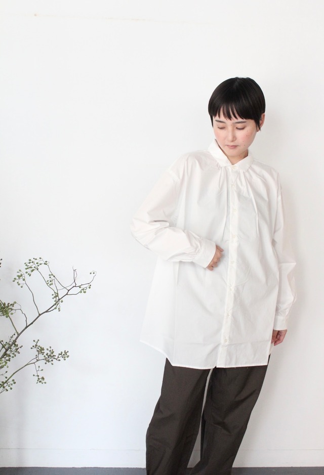 UT243SH010 ナチュラルタイプライター バンドカラーバックギャザーシャツ