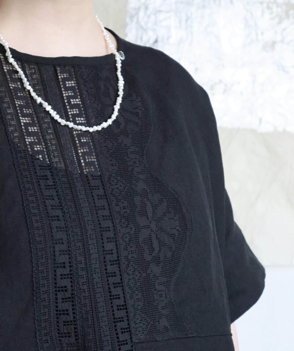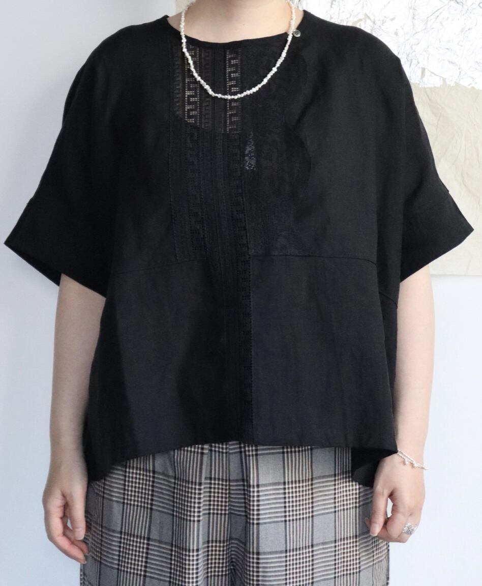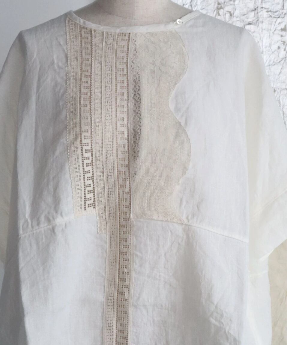 UT223BL034 ナチュラルタイプライター/トリプルワッシャーリネン イタリアンフィレレース ベーシックブラウス