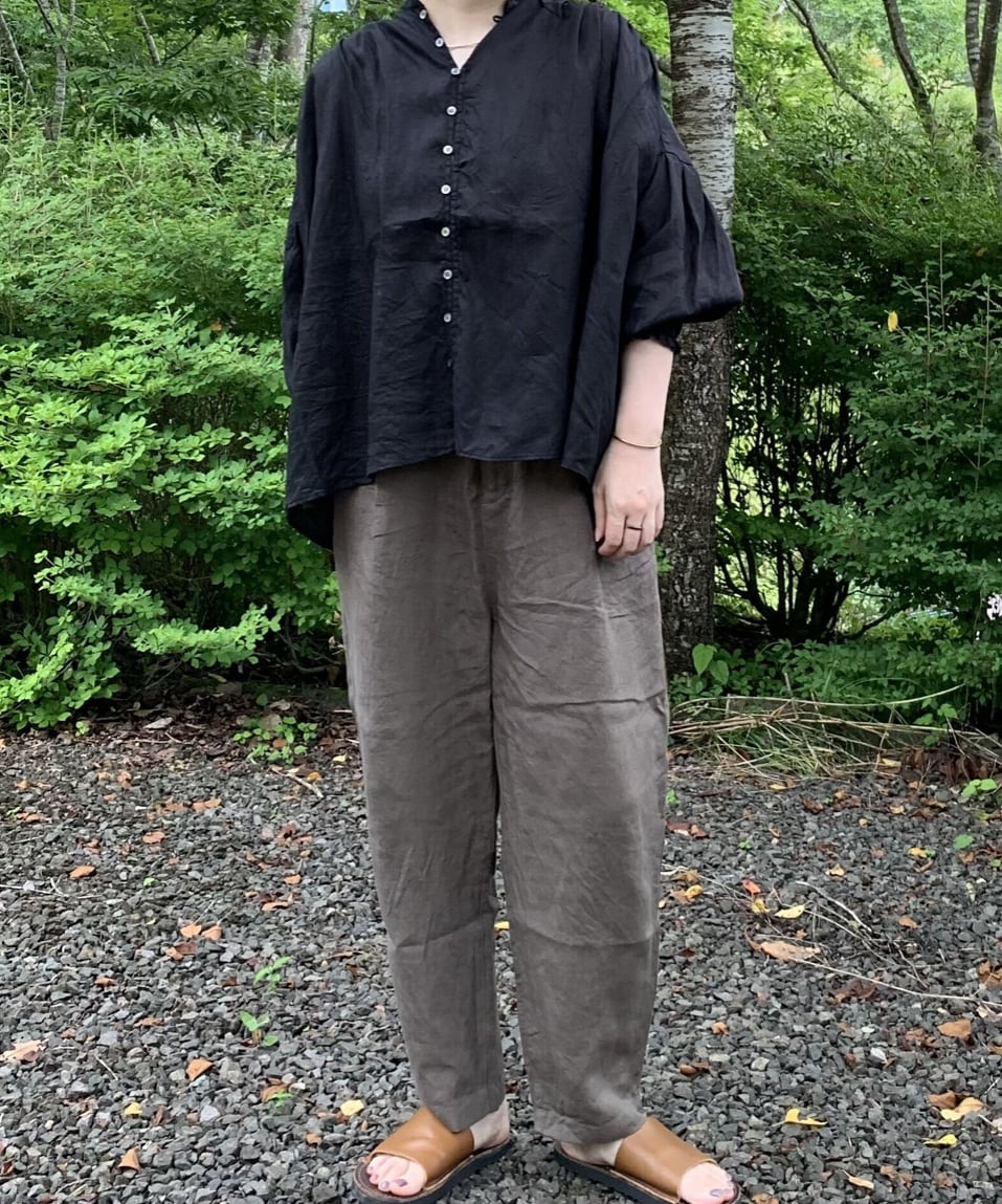 UT241BL045 フレンチリネン/リネンストライプ シャーリングブラウス