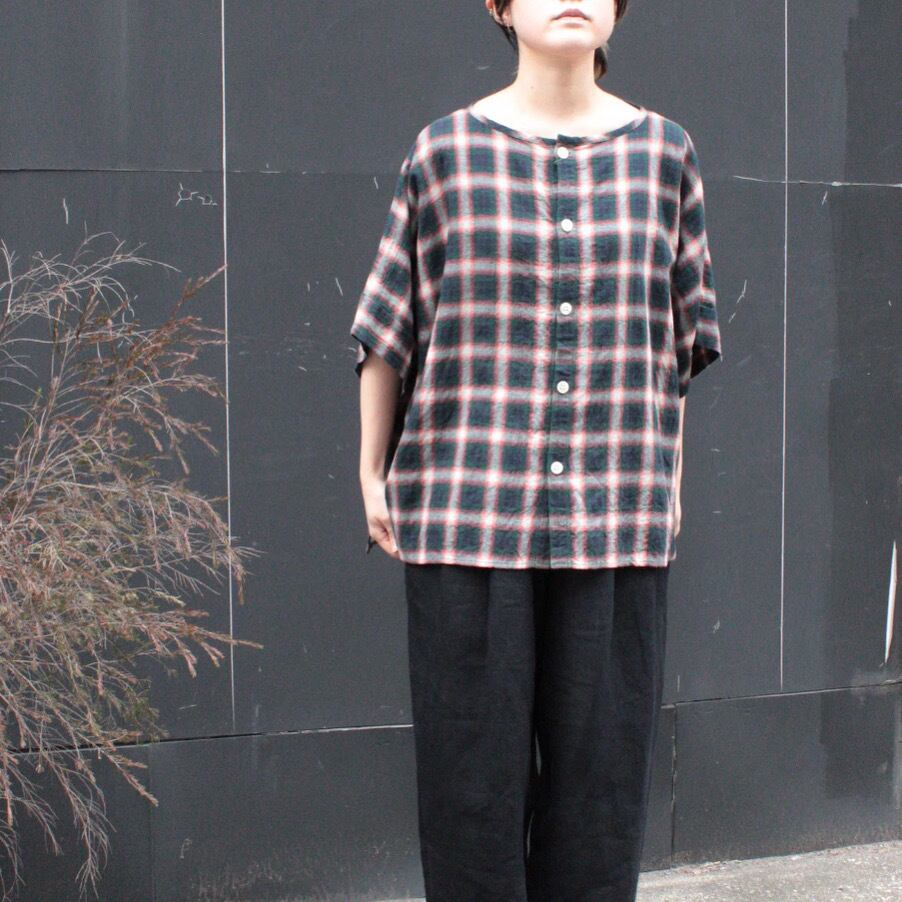 US242BL012 ヘリンボンチェック/フレンチリネン 2WAYワイドブラウス