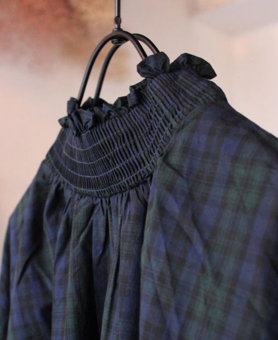 甘めなデザインをトラディショナルなチェックで仕立てた