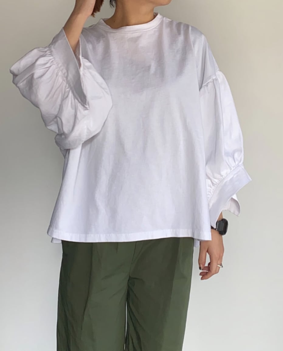 ふんわりと丸みのあるパフスリーブで、スタイリングに程よい甘さをプラス。