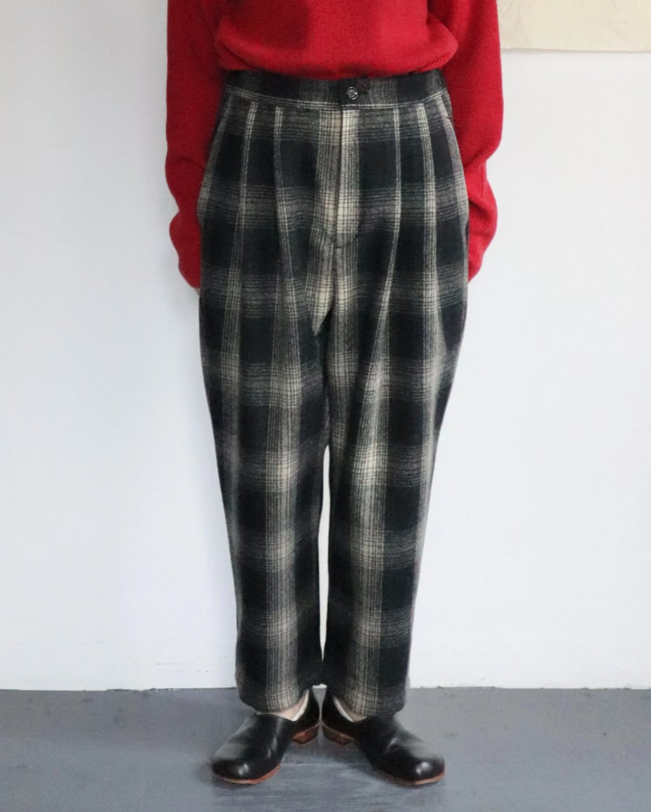 UT224PT035 ウールへリンボン/オンブレーチェック タックパンツ