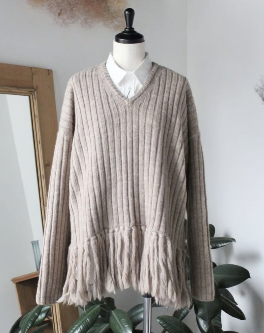 長さのあるフリンジが表情豊かなニットプルオーバー