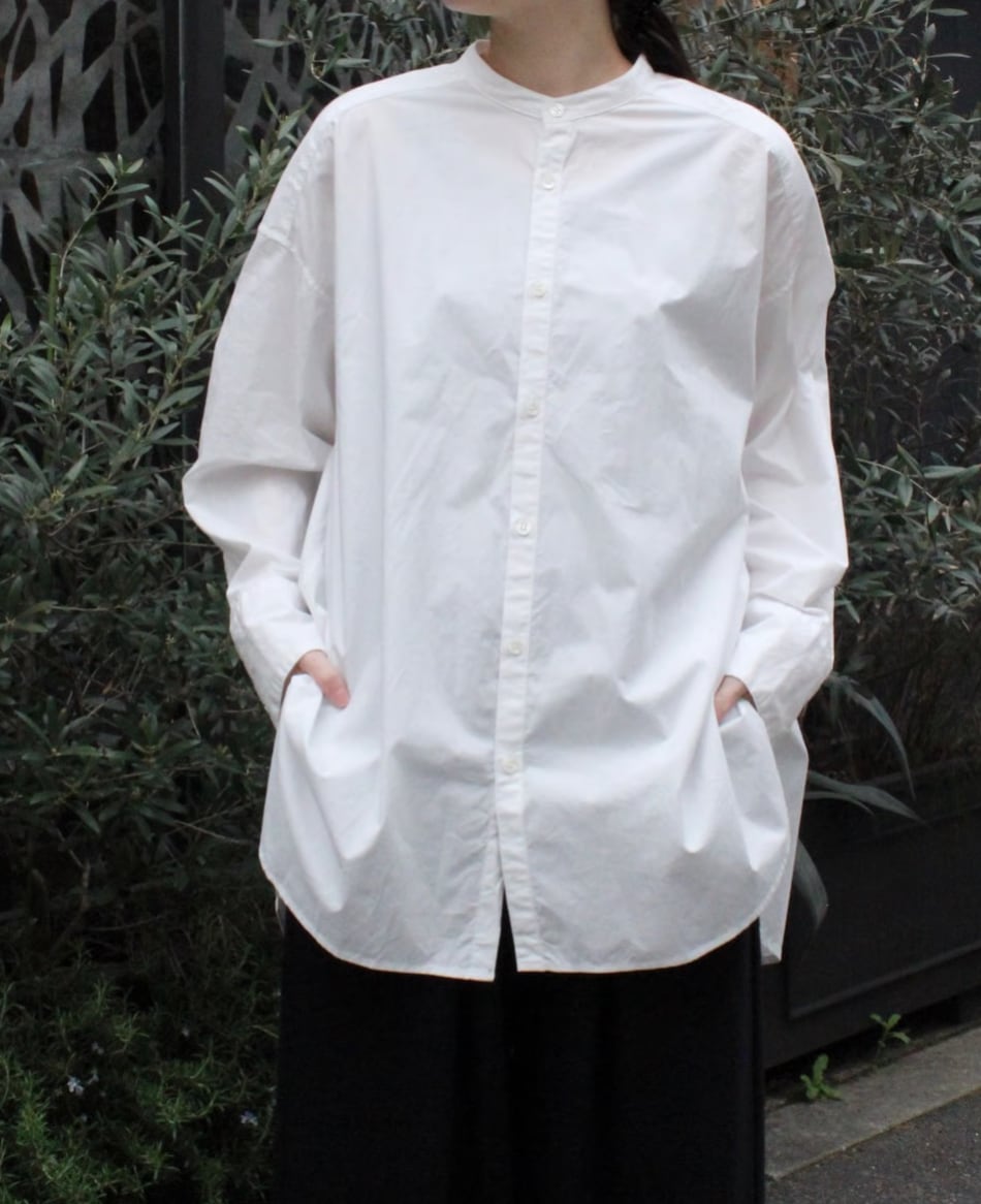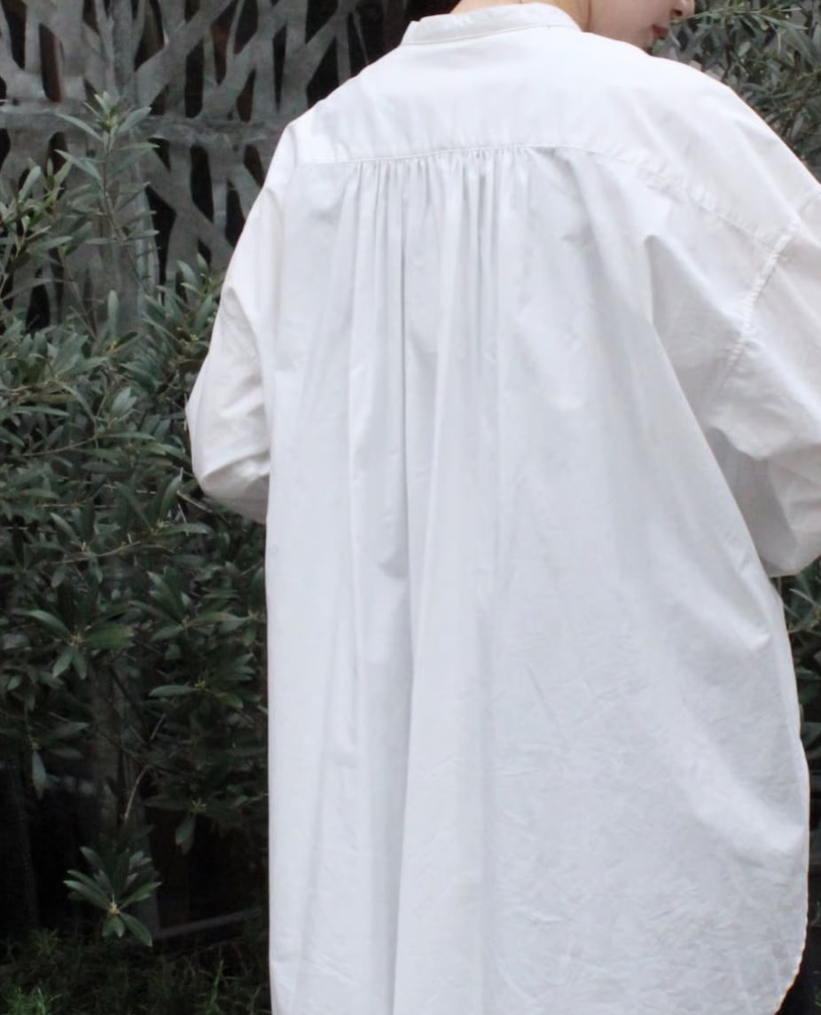 UT243SH010 ナチュラルタイプライター バンドカラーバックギャザーシャツ