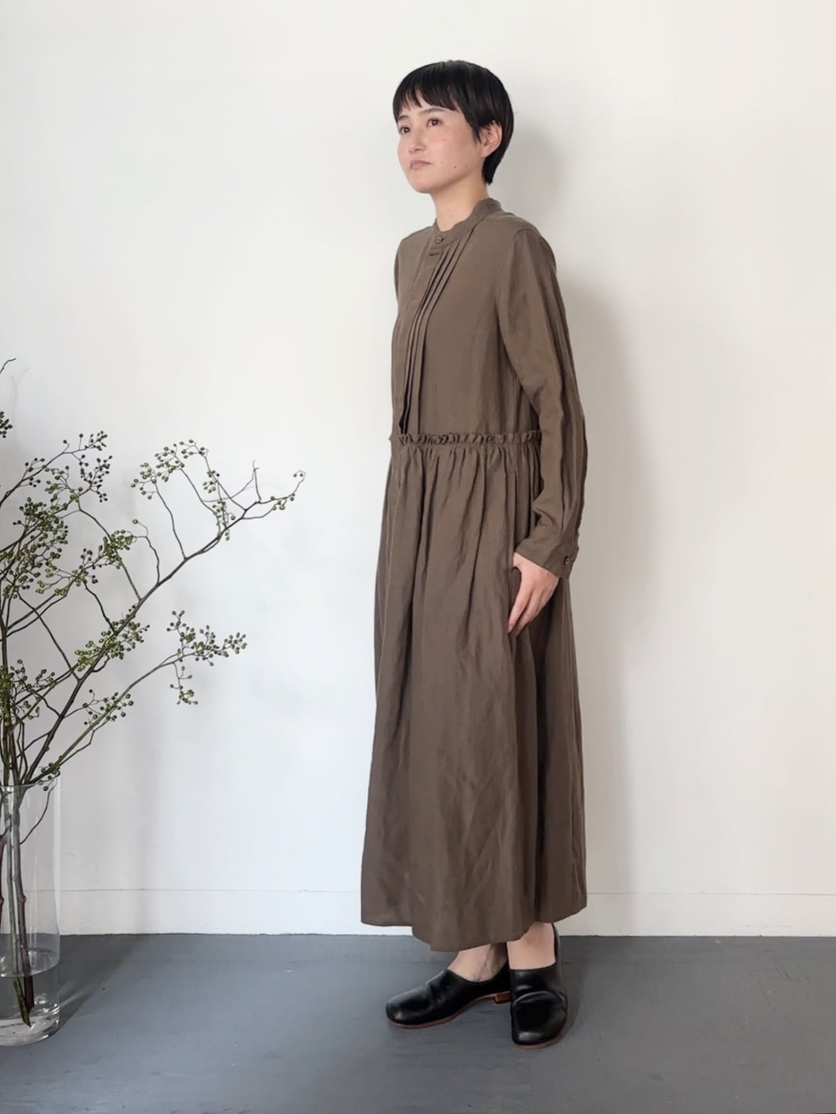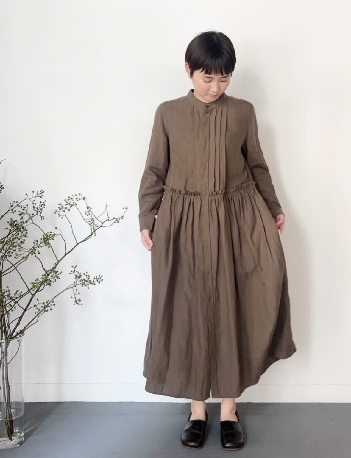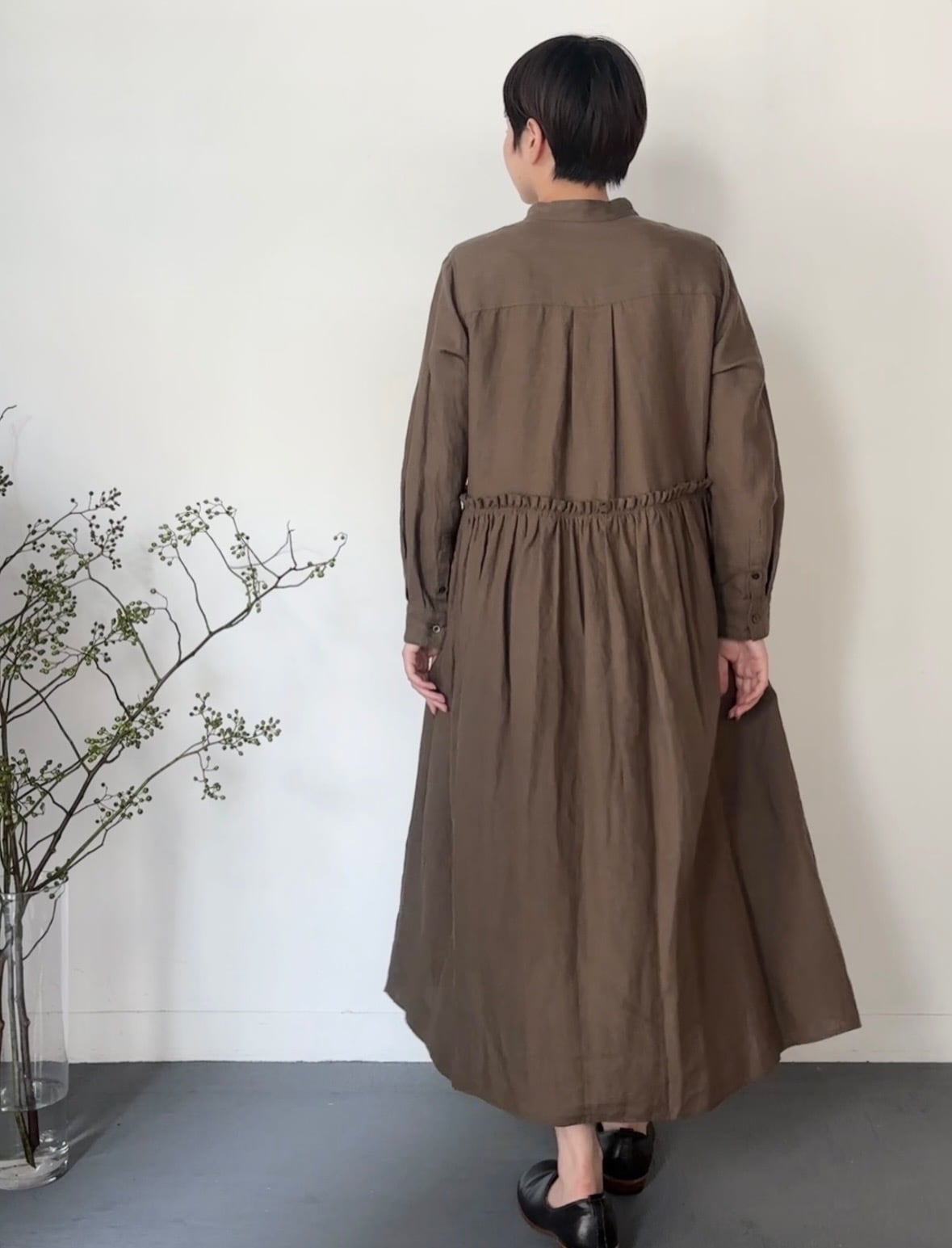 UT251OP025 トリプルワッシャーリネンコットン タックシャツワンピース