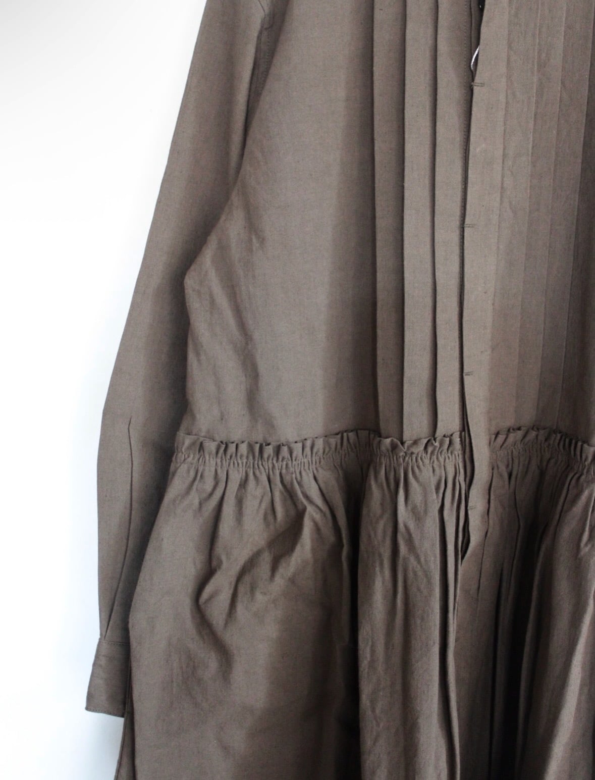 首元から胸元にかけて施された細やかなピンタックが