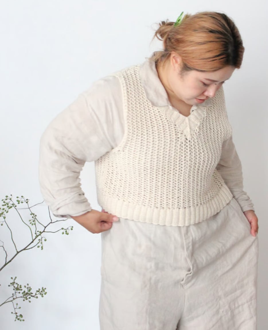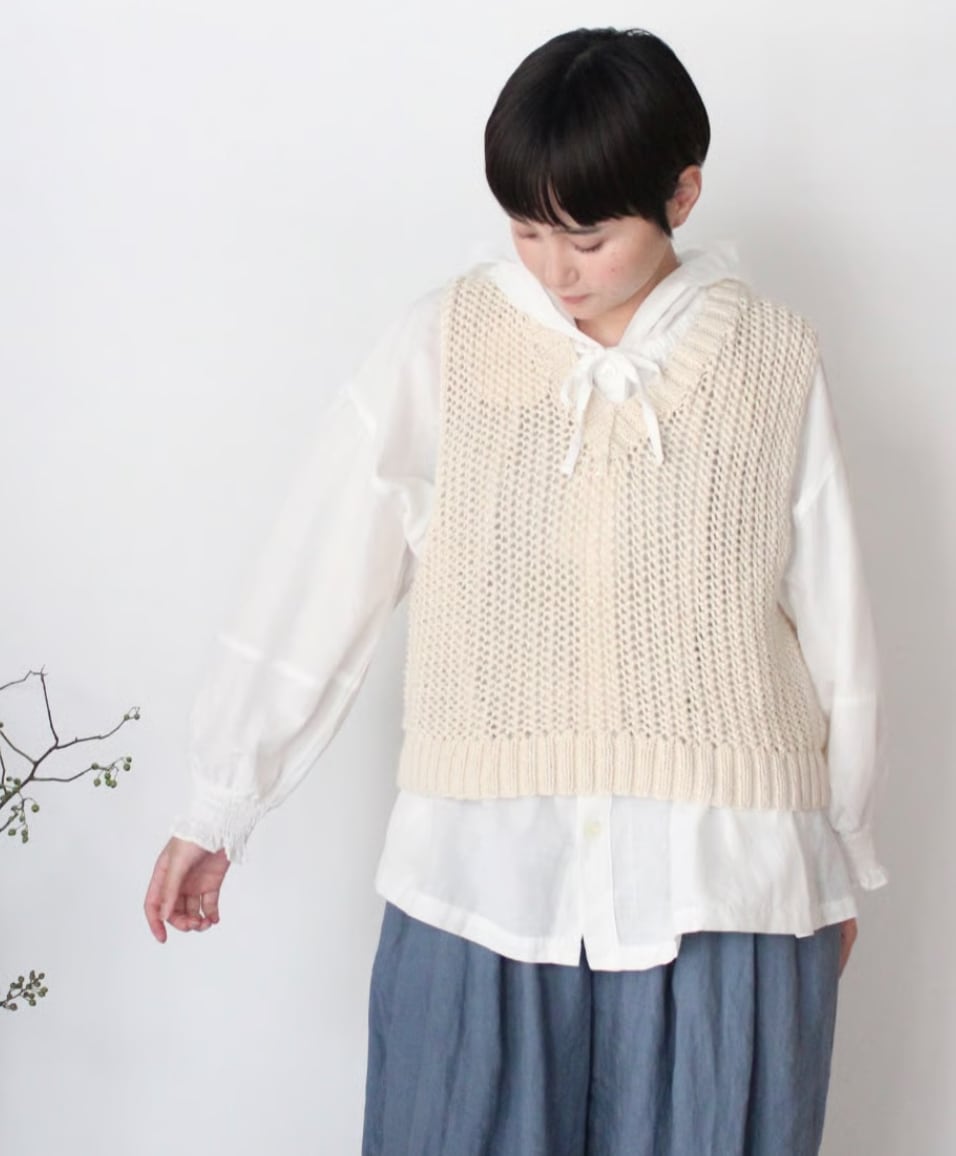 シンプルな着こなしに重ねるだけで、編み柄や色、立体感が加わり