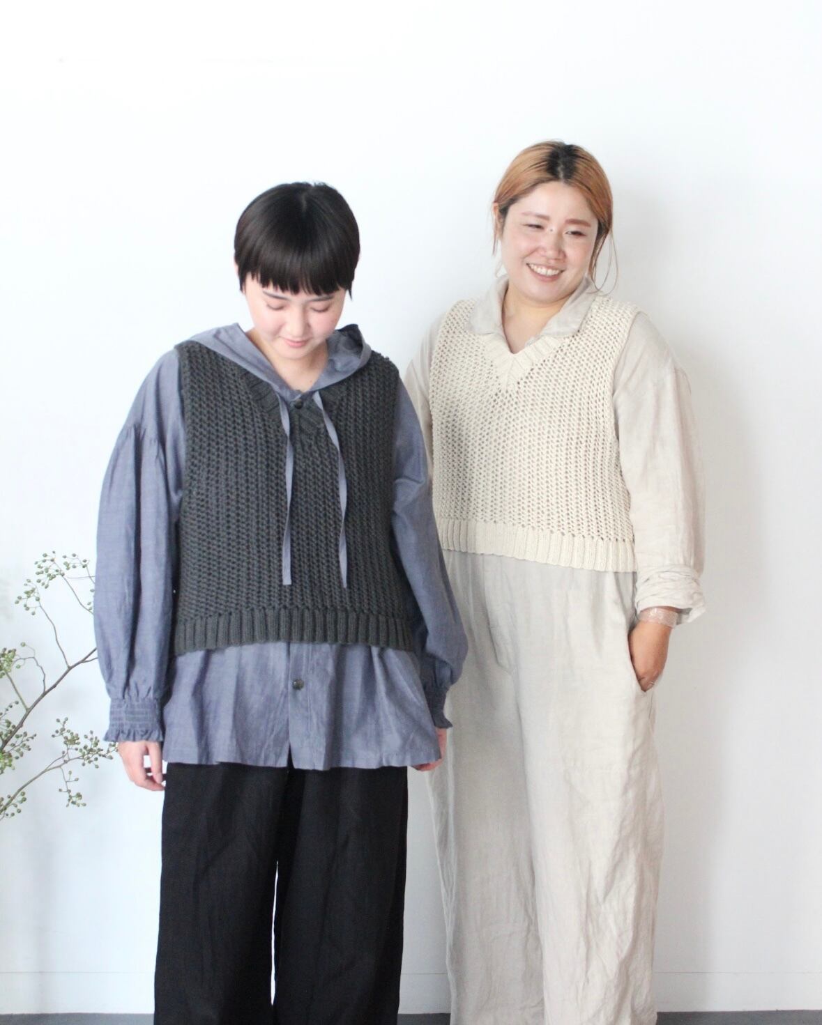 ワンピース、シャツ、カットソーなど様々なインナーとレイヤードが可能で