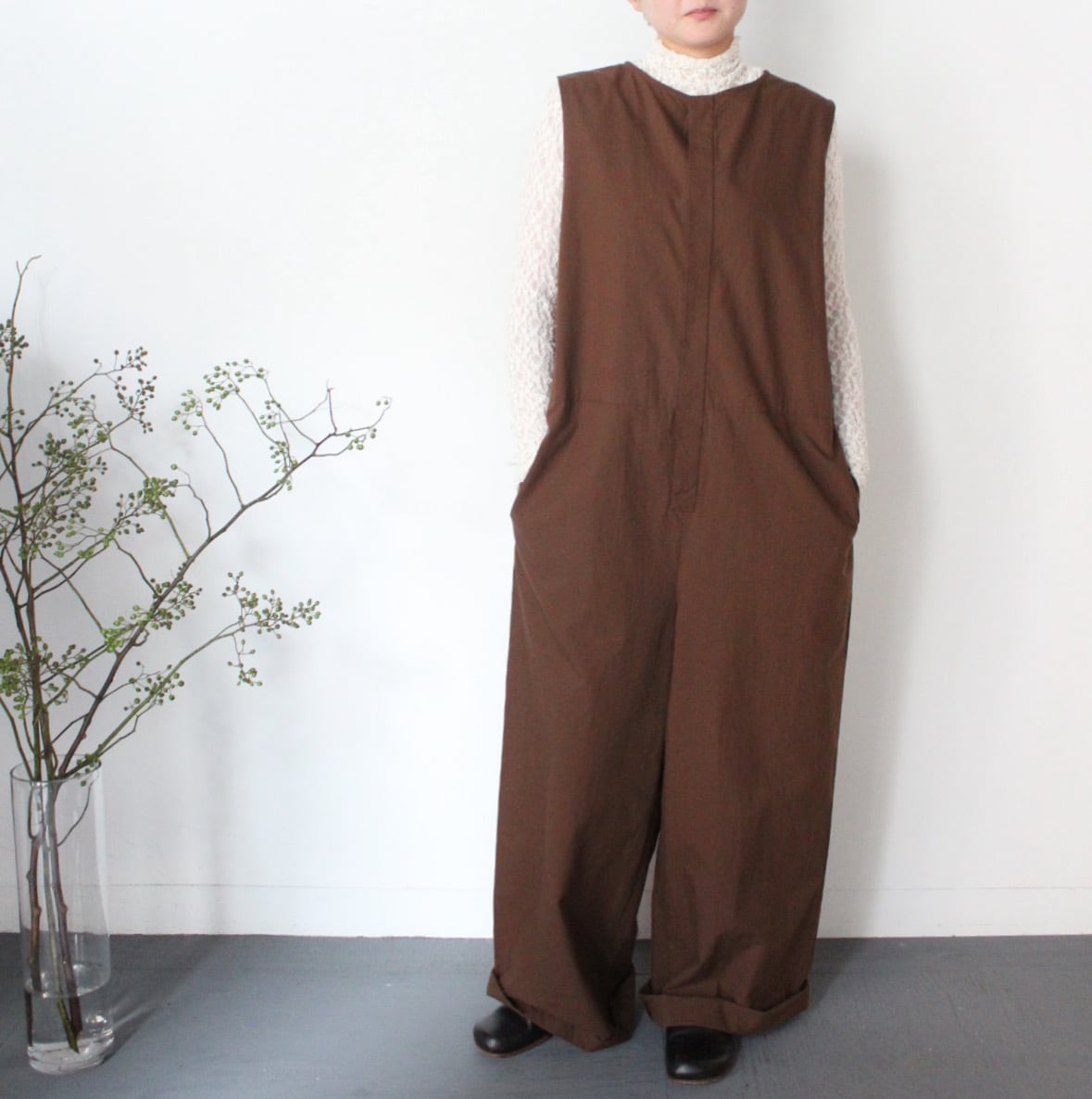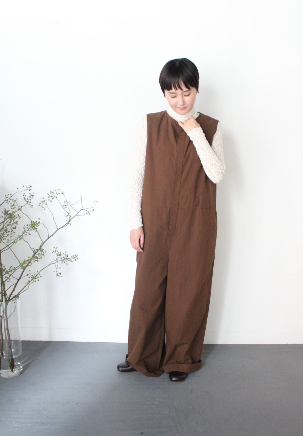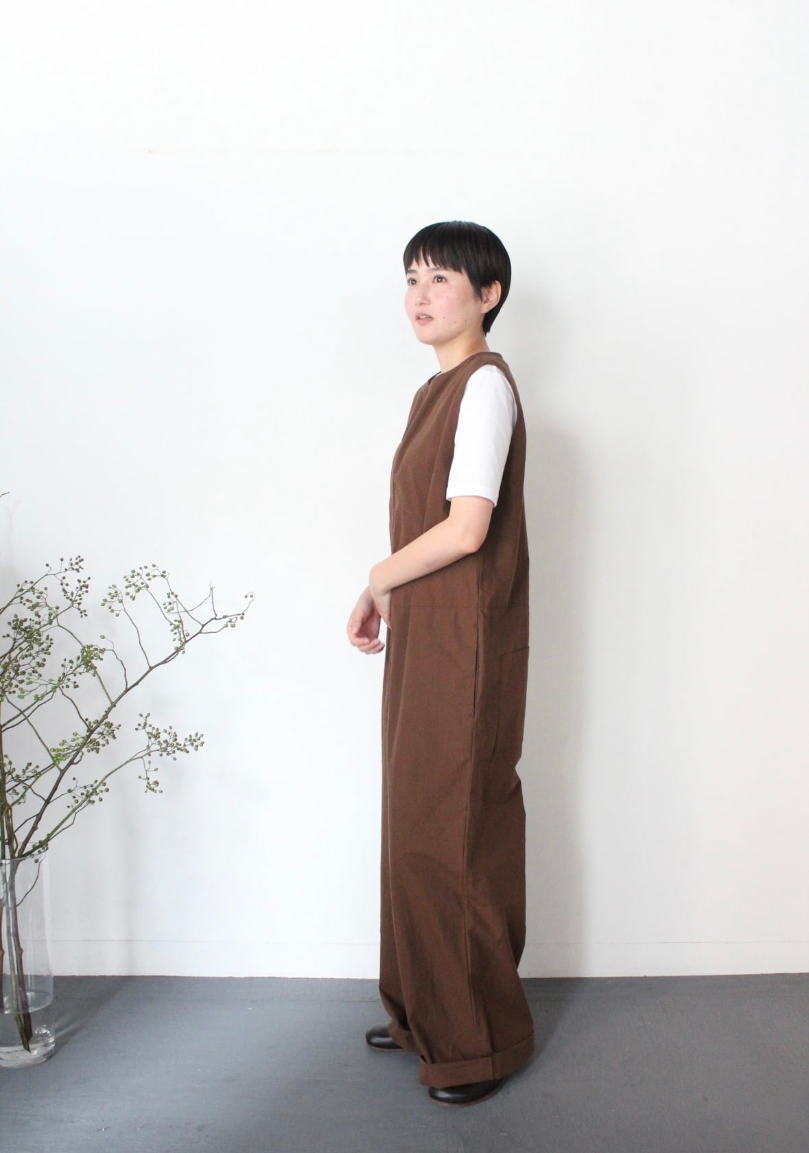 UT260PT009 コットンリヨセル起毛ワッシャーブロード ボートネックサロペットパンツ