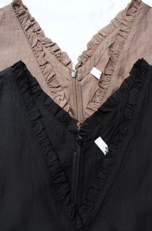 胸元にあしらわれた控えめなリトルフリルがアクセント