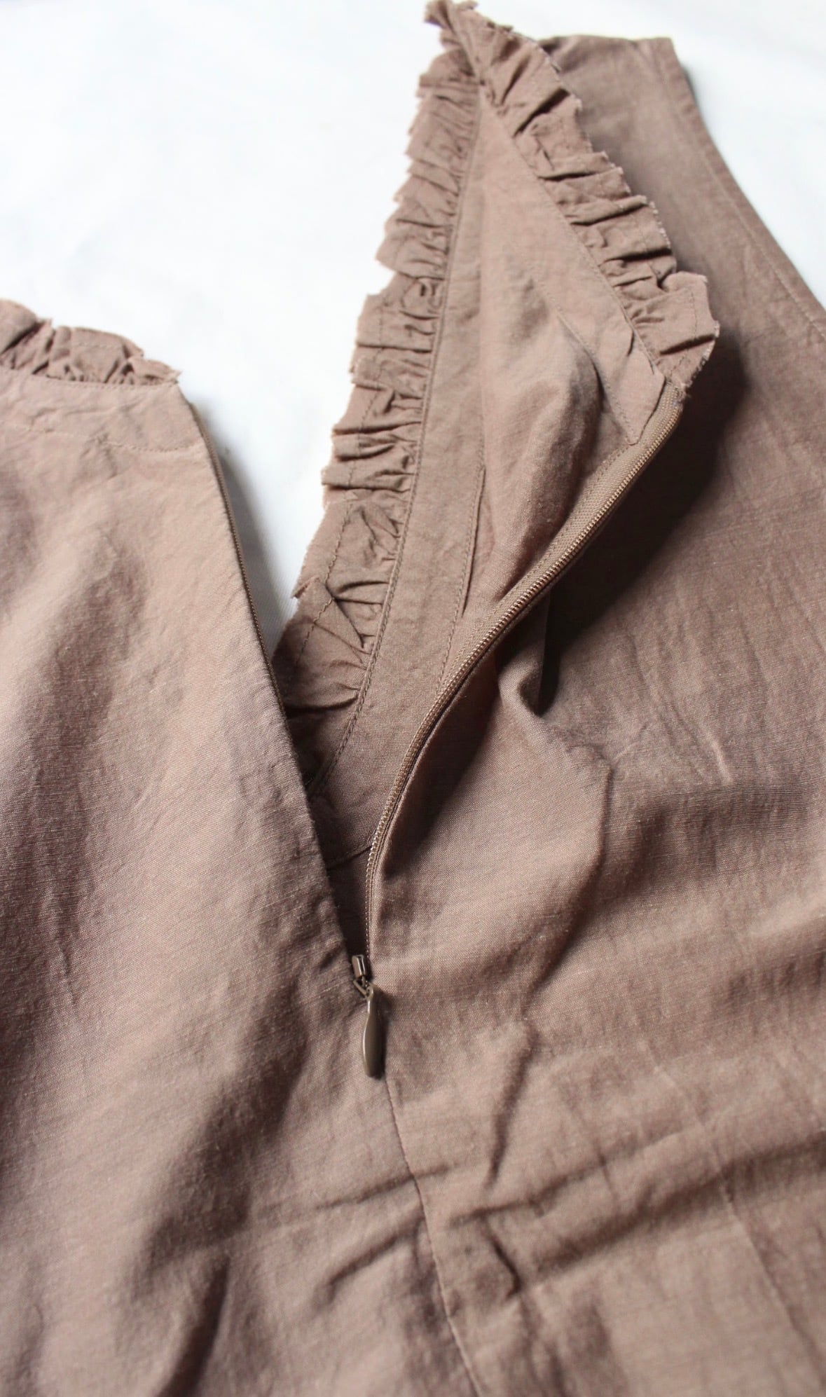 US261PT026 コットンキュプラリネン リトルフリルサロペット