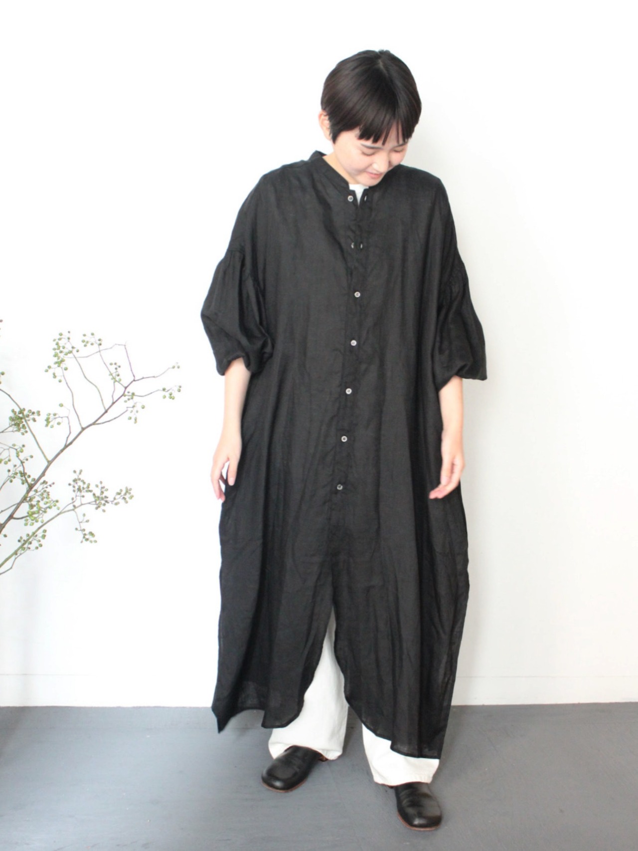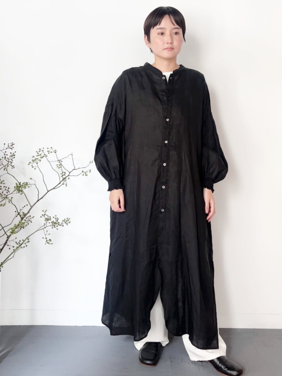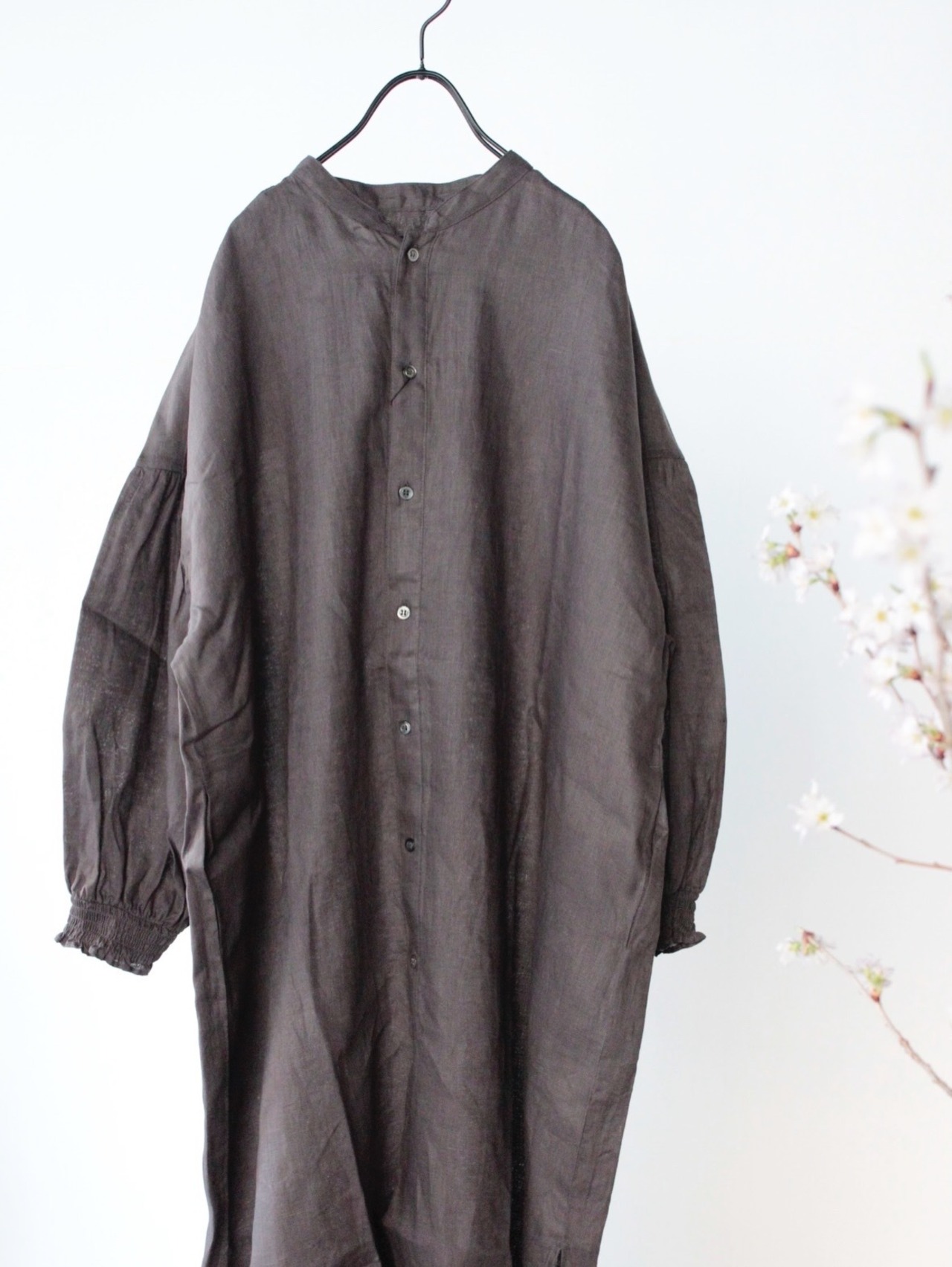 TS260OP066 フレンチリネン バンドカラーシャーリングワンピース
