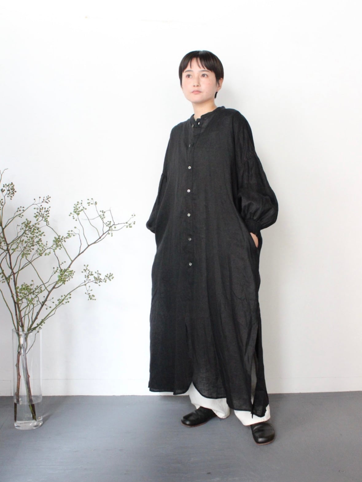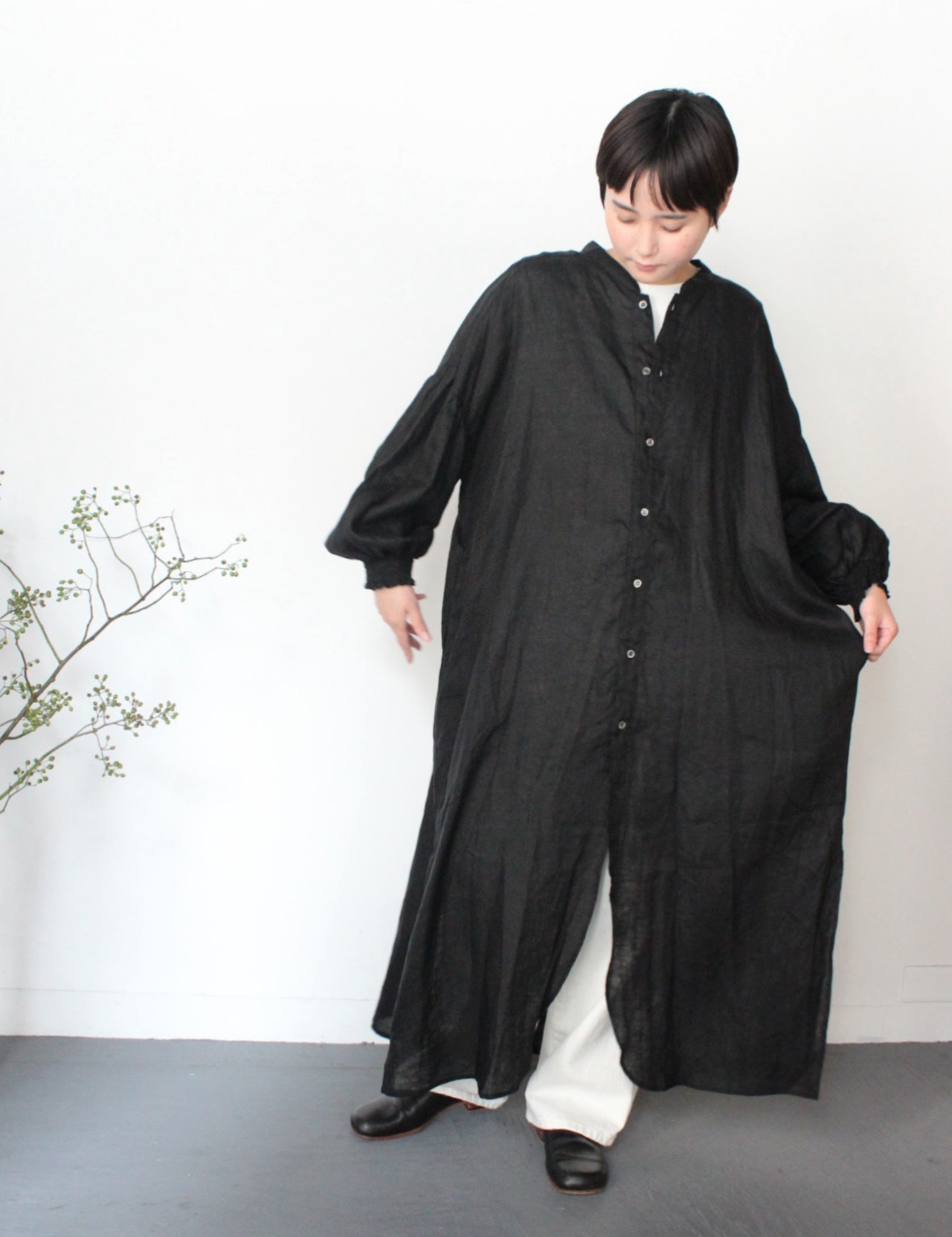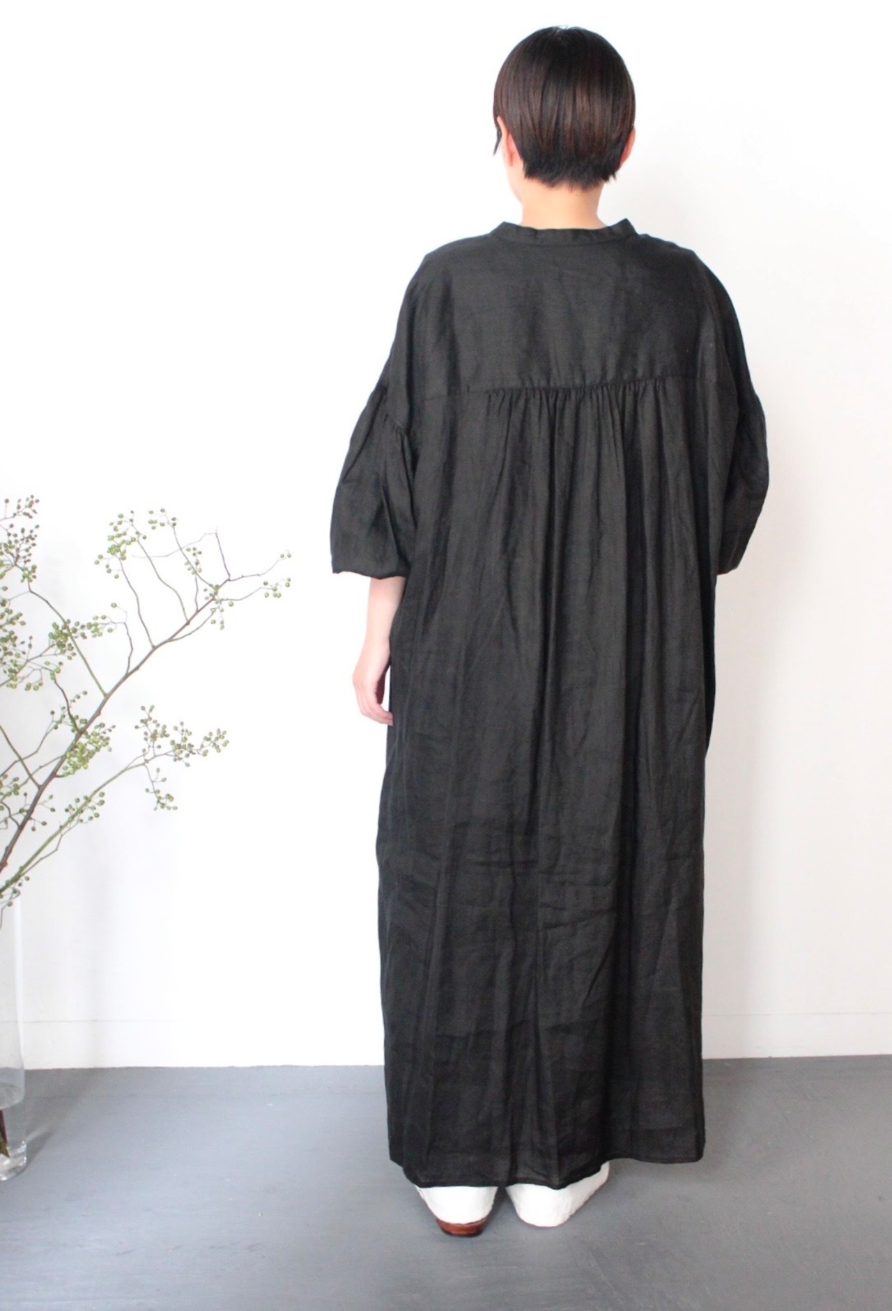TS260OP066 フレンチリネン バンドカラーシャーリングワンピース