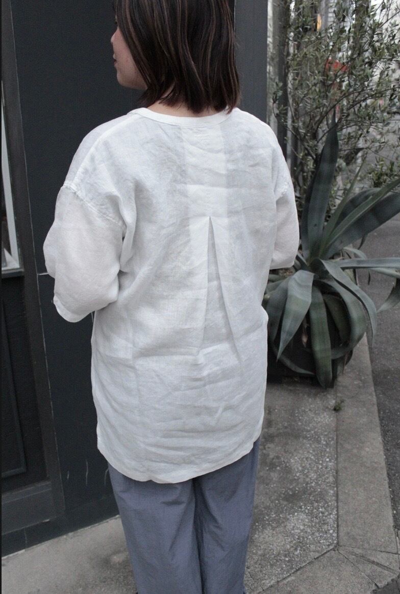 後ろ中心タック、後ろ身頃の丈が長く、コクーンシルエットになるデザインです。